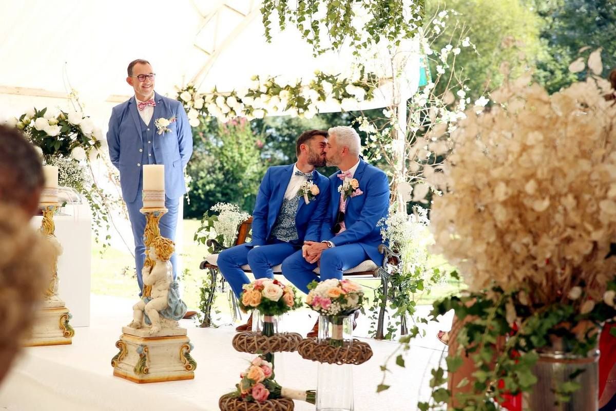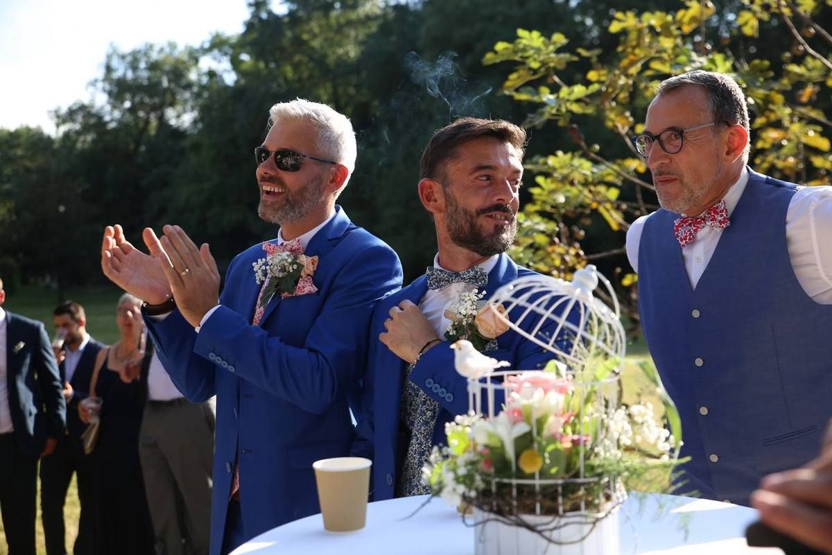 IL N'Y A PAS D'AMOURS HEUREUX DISAIT L'OFFICIANT DE CE MARIAGE LAÏQUE ET SATANIQUE, ET IL N'Y A PAS DE RENCONTRES FORTUITES NI DE HASARDS, CAR TOUT SERAIT PRÉDÉTERMINÉ, ET ADIEU LE LIBRE ARBITRE DE D.IEU. SATAN EST PRÉSENT COMME D.IEU EST, SERA ET FUT DANS UN MÊME MOMENT, CAR CE QUI NOUS ARRIVE EST PRÉVU DE LONGUE DATE DITL'OFFICIANT ERIC FABRE, PREMIER OUVRIER DE FRANCE A MURET EN TANT QUE PRIMEUR DE MÉTIER ET OFFICIANT DE LA GLDF